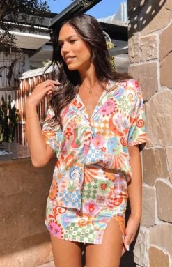- Our colourful print top styled with our matching print mini skirt is the perfect staple for your summer wardrobe! Wear over swimmers as a beach cover up or style with some sandals and sunglasses for the ultimate vacation outfit.