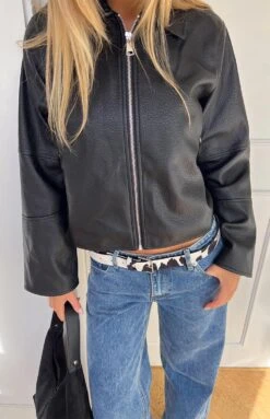 Add an edgy touch to your wardrobe with our Rockie Black PU Pebbled Cropped Jacket! The faux leather finish and cropped silhouette create a sleek, on-trend look perfect for layering. Style it with a simple top and jeans for an effortlessly cool daytime outfit, or pair it with a mini dress and boots for your next concert or festival. A must-have statement piece for your winter wardrobe!