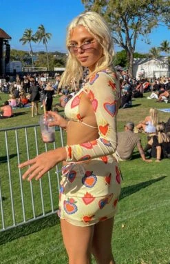 - Dress to impress in our heart print mesh mini skirt! Pair with our matching top for the ultimate festival ready look.
