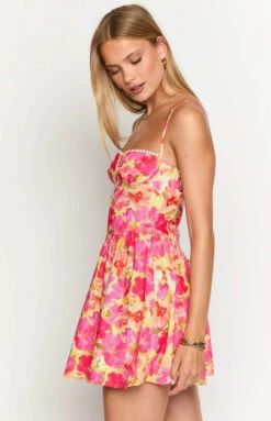 Our Sam Yellow Floral Corset Mini Dress is a charming, figure flattering style that’ll have you feeling fabulous this summer! With its corset bodice, sweetheart neckline, and delicate white dot trim, this dress offers a perfect mix of structure and softness. Pair with sandals and gold jewellery for a fun, feminine vibe that’s perfect for brunch or a day out in the sun!