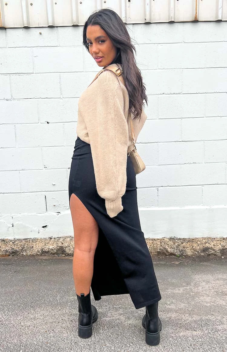 - Black Knit Midi Skirt