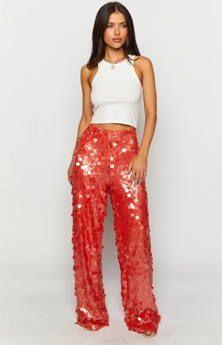 Do not miss a chance to stand out in the ‘Saria sequin pants’. These pants are perfect for your next late night event or festival and pair perfectly with sneakers and a simple top making these pants the star of the show.