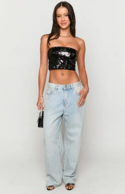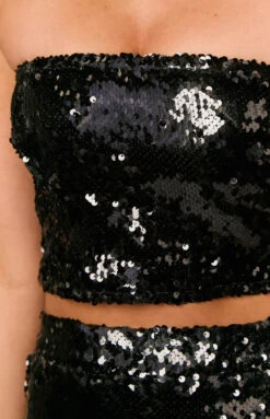 Black Strapless Sequin Top