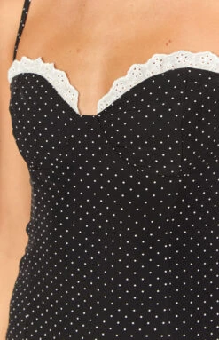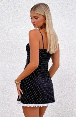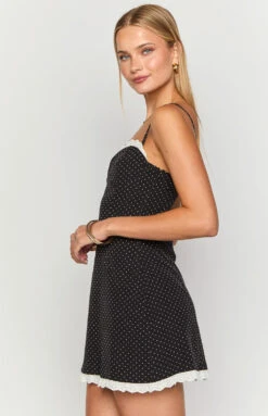 Capture a sweet and flirty vibe in our Seaton Black Polka Dot Lace Mini Dress! The timeless black and white polka dot print is elevated by delicate lace trim for a touch of romantic charm. Pair it with strappy heels and soft curls for date night, or dress it down with sandals and a cropped cardigan for a daytime picnic!