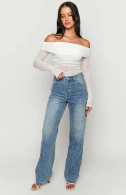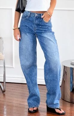 Our Sparks Mid Wash Denim Straight Leg Jeans are the not-so-basic staple you’ve been dreaming of! Cut in a classic straight leg silhouette, these jeans are a timeless piece we’ve elevated with diamanté details! Style with a white off shoulder top and heels for a stunning day to night look.