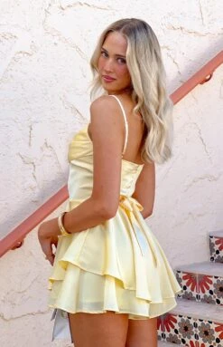 Sweet and flirty, our Steph Yellow Ruffle Playsuit is ready for your next sunshine adventure! The tiered ruffle skirt adds a playful touch, while the fitted bodice keeps it elevated and flattering. Pair it with strappy heels and a mini bag for your next party, or throw on a denim jacket for a more relaxed daytime look. This playsuit is pure sunshine in an outfit!