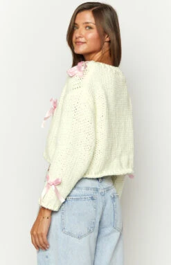 This pink bow sweater is cute and comfy all in one! Styled with jeans and sneakers make the perfect cooler weather ensemble. Look effortless in its oversized fit – the perfect knitted jumper you will be wearing on repeat.