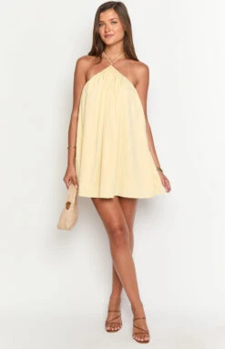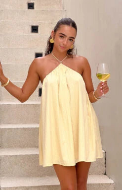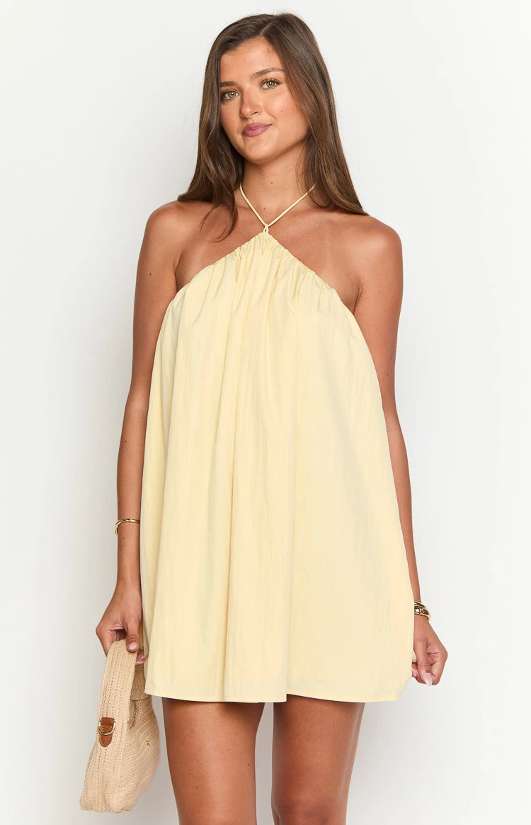 Feel cute in our Talei Halter Puff Mini Dress in this beautiful yellow! With an adjustable halter neck tie and fun flowy silhouette, this is the go-to fit for any occassion! Tie this look together with statement earrings and a cute handbag.