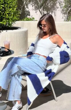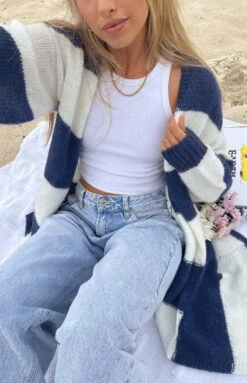 Navy and White Stripped Long Cardigan