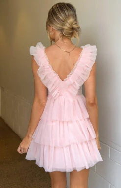 Dress to impress with this stunning pink tulle mini dress. This chic and feminine style is perfect for dinner with the girls. Pair with bold statement earrings and strappy heels for a glamorous look, or dress it down with white sneakers and a denim jacket for a more casual vibe.
