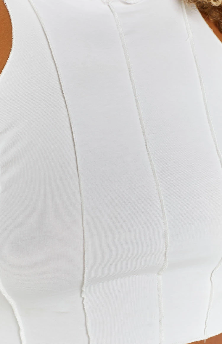 Vance White Seamed Racer Tank