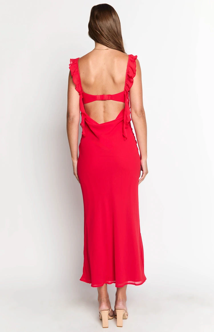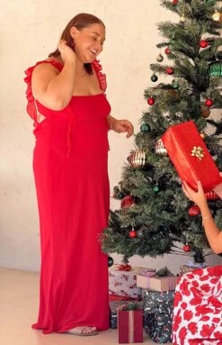 Say hello to the Viona Red Maxi Dress, your ultimate showstopper for romantic nights and chic celebrations. With its flowy silhouette and eye-catching ruffles, this dress brings all the drama in the best way possible! Style with heels and statement earrings for a wedding guest look, or keep it casual with flat sandals and a woven tote for date night.