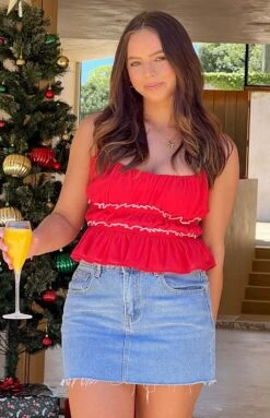 Our Wiatt top is a perfect addition to your summer wardrobe rotation! Featuring adorable white stitching that pops out aginst the bold red, this top is perfect for all of your Christmas festivities! Pair this top with our the matching Wiatt maxi skirt for a cute coordinated look, or opt for a denim mini skirt for a more casual vibe.