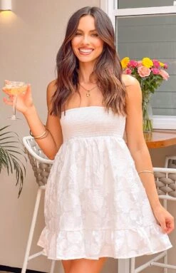 We are obsessed with the Wiley White Strapless Mini Dress! It’s flowy style and stunning floral detailing will have you looking elegant and stylish, perfect for any summer event! Style with sandals and a statement necklace for an effortless summer day outfit, or swap for heels for an elevated look!