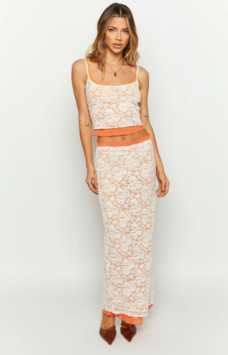 Be the first to review “Willow Orange Contrast Lace Midi Skirt” Cancel reply