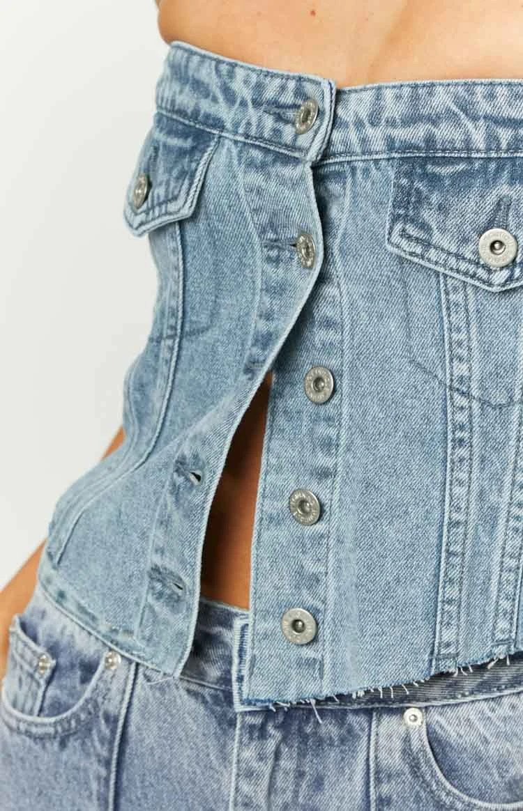 We are living for a denim on denim moment right now – for any occasion! Style our corset top with denim jeans, or a skirt and add gold jewellery for a total cool girl look!Â