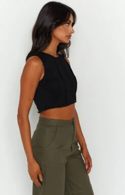 Xandra Black Crop Tank Top
