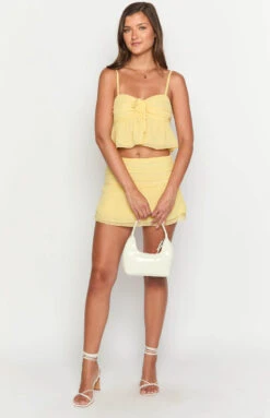 Feel fun and flirty in our Zyra Yellow Mini Skirt this summer! Perfect for a festival or summer party, this mini skirt adds a gorgeous pop of colour to any event. Pair with the matching Zyra Yellow Crop Top for a matching moment, or style with a white tank top and sandals for a cute, casual look!